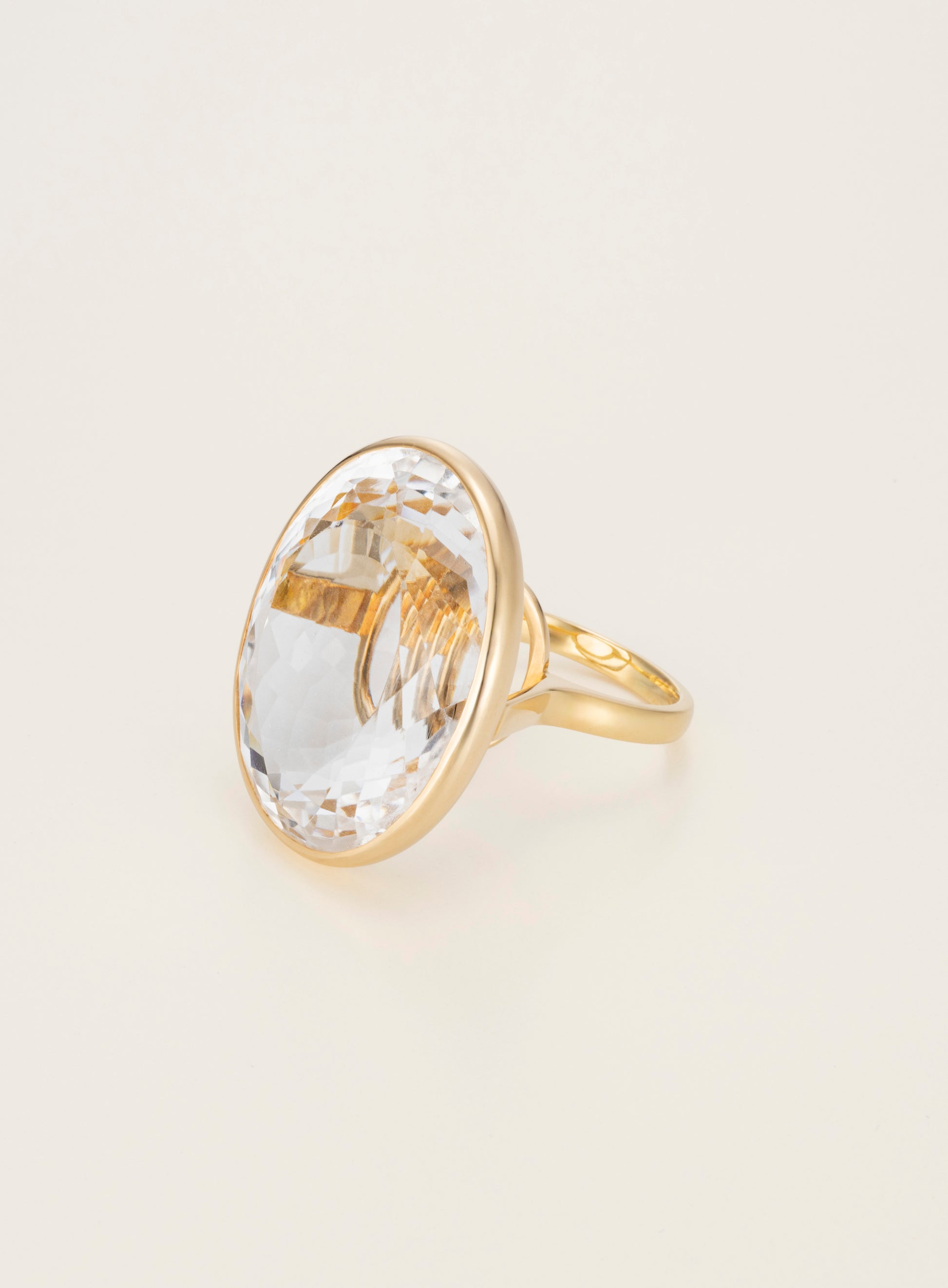 こどもの頃、駄菓子屋で買ったもらったキャンディリング。それをイメージしてできた唯一無二のデザイン。大粒でカラフルな石はどれひとつとして同じものはなく自分だけの石。その石に想いを馳せお守りがわりに身につけ続けていただきたい。