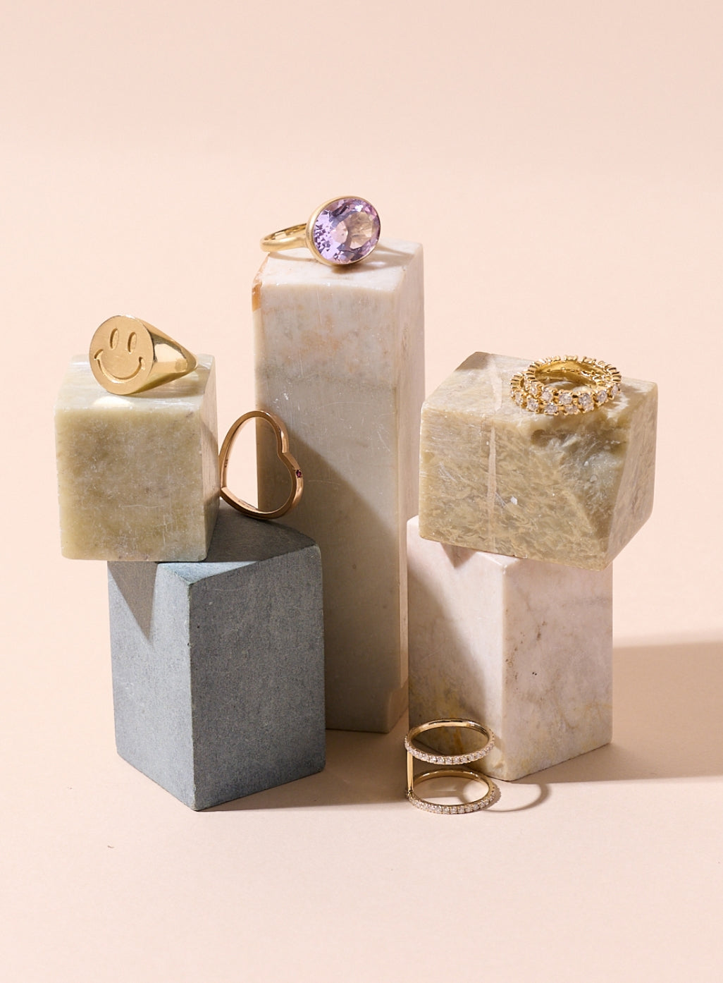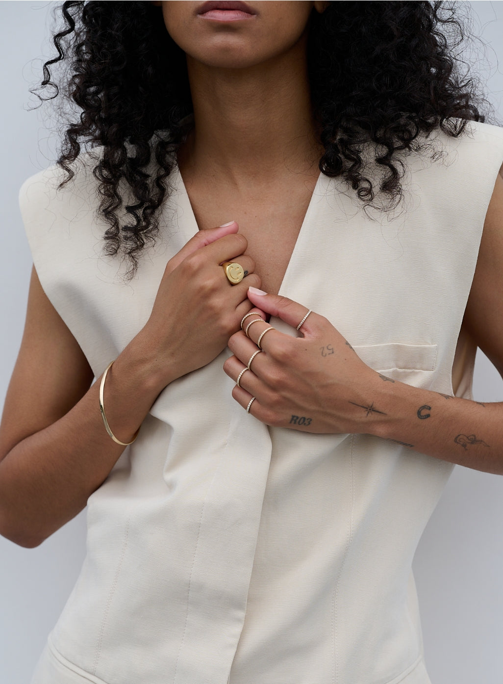 ハイジュエリーらしくK18の重量感を感じる厚みに遊びをプラスさせ、大人の外しを楽しむことができるDesign Ringです。「ハイジュエリーを遊ぶ」MIN'NAのコンセプトを表すアイテムです。