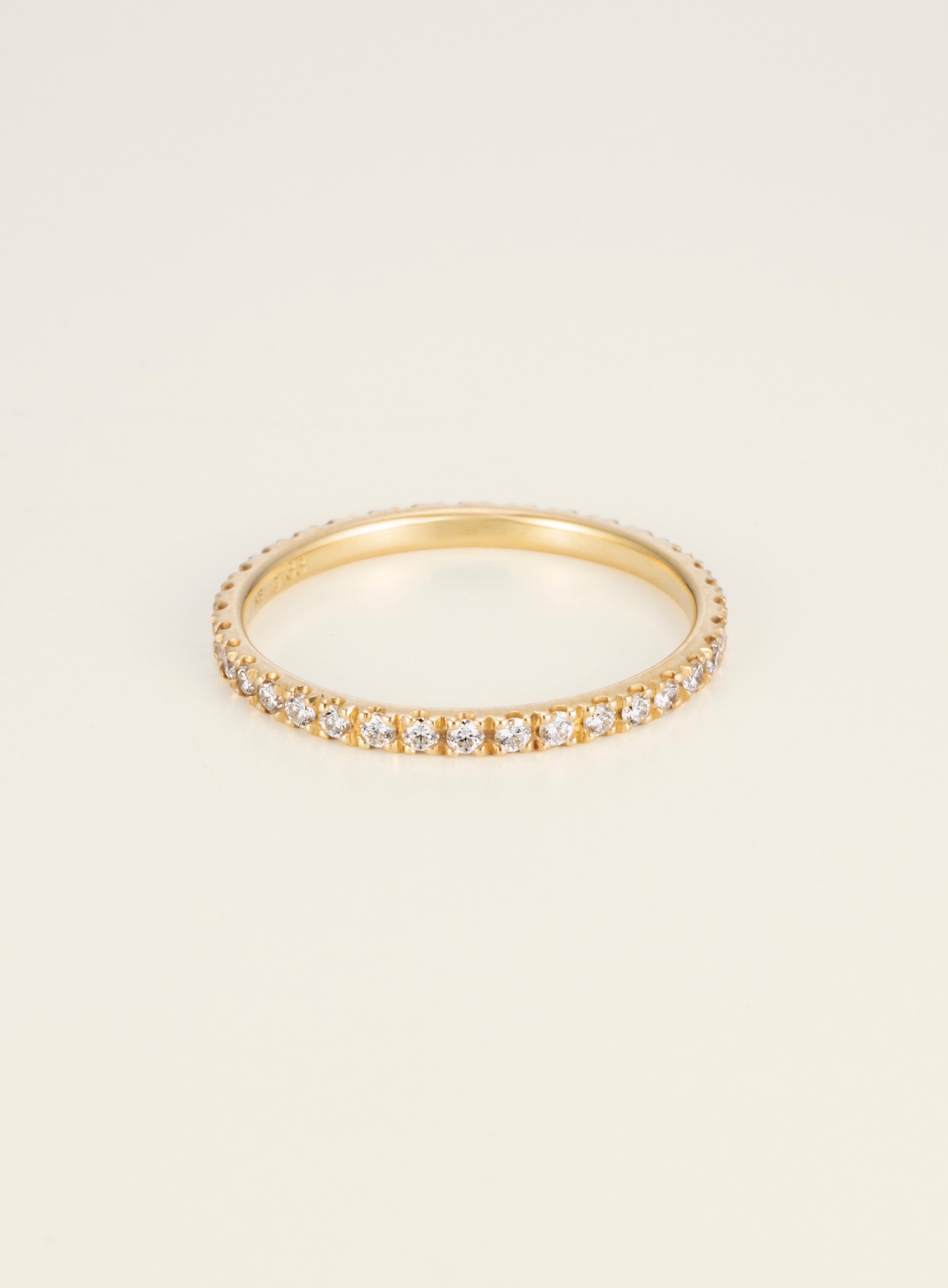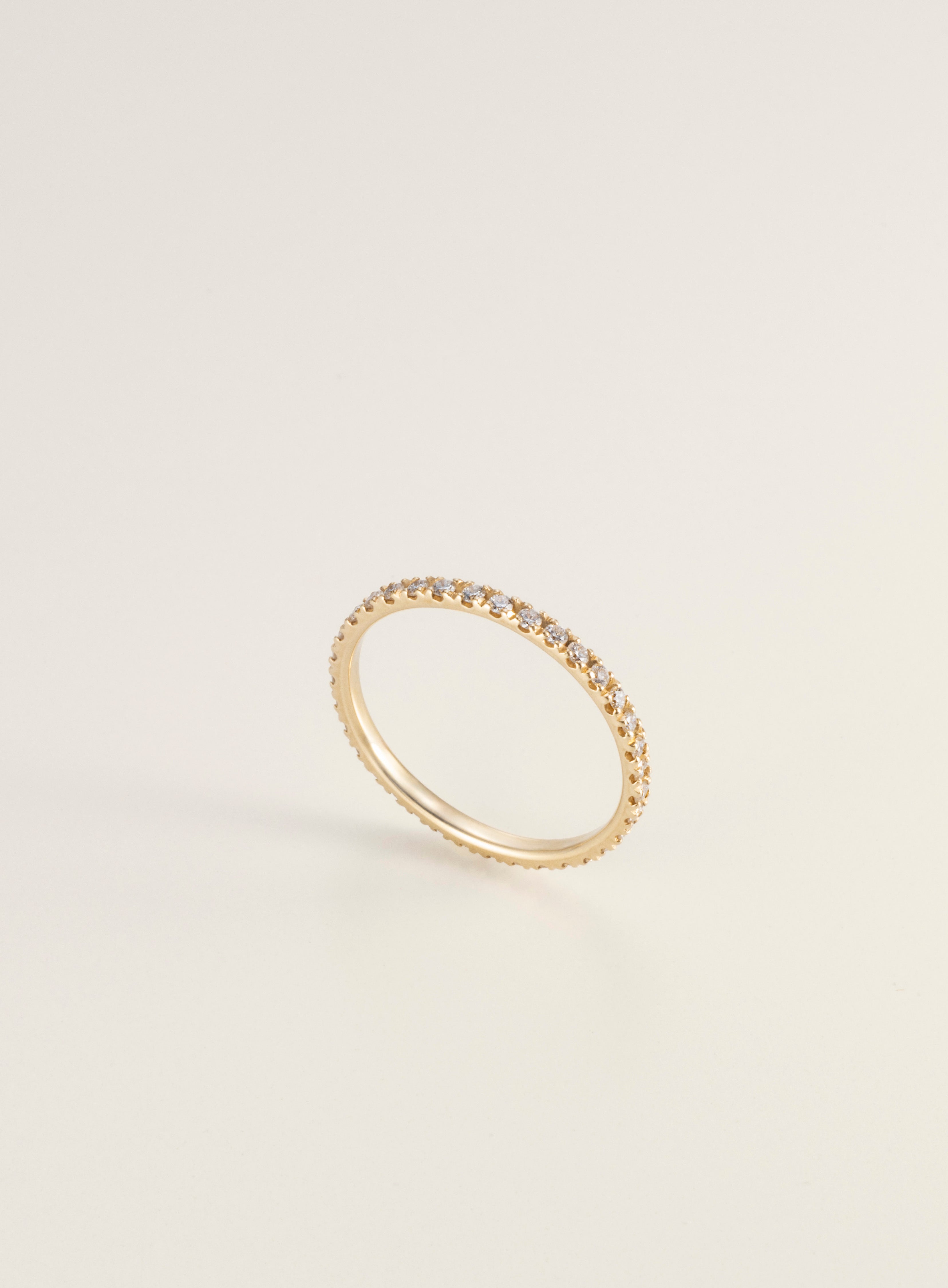 シンプルながら圧倒的な華やかさを演出するフルエタニティー。ご自身の持つ大切なリングと組み合わせて個性的な重ねづけを楽しむこともできる使い勝手が最優秀な一生ものアイテム。シンプルにこれ一本だけ身に着けてもハイグレードなDiamondの煌めきが存在感を放ちます。エタニティーをあえて薬指以外に、何本もつけるスタイルも新しくて楽しい。